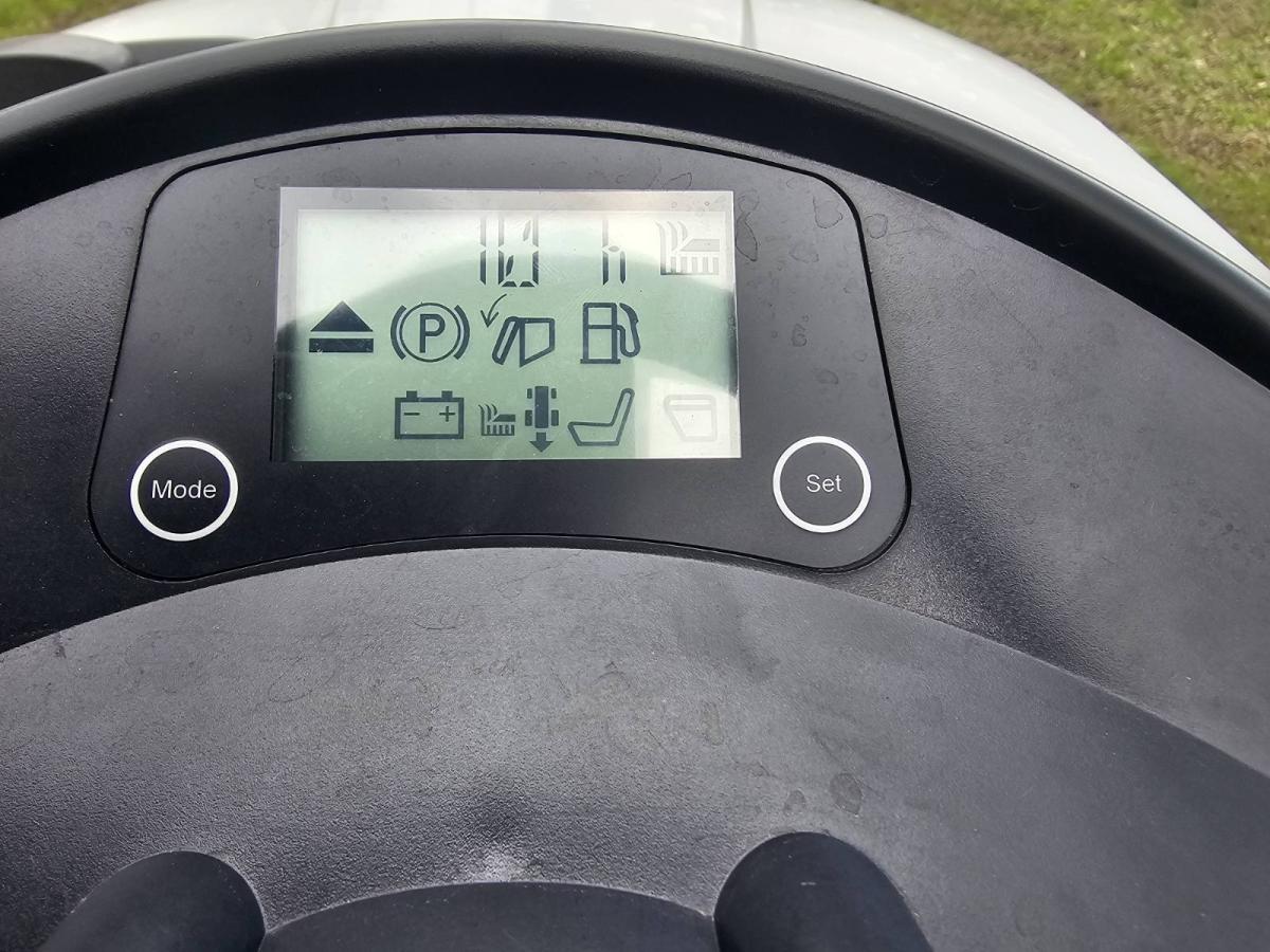 A modern LCD kijelző napfényben is jól látható, és minden fontos információt megjelenít, beleértve az üzemórát, a fűgyűjtő kosár telítettségét, az üzemanyag- és olajszintet. A rugózott vezetőülés szerszám nélkül állítható, így minden testmagassághoz megfelelő kényelmet biztosít.