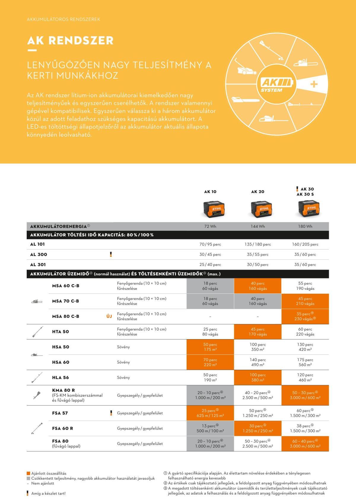 A STIHL akkumulátoros üzem- és töltési időkről szóló áttekintésünkben megtudhatja, hogy az adott STIHL készülékkel és a választott akkumulátorokkal mennyi ideig dolgozhat, illetve mennyi idő szükséges a feltöltésükhöz.